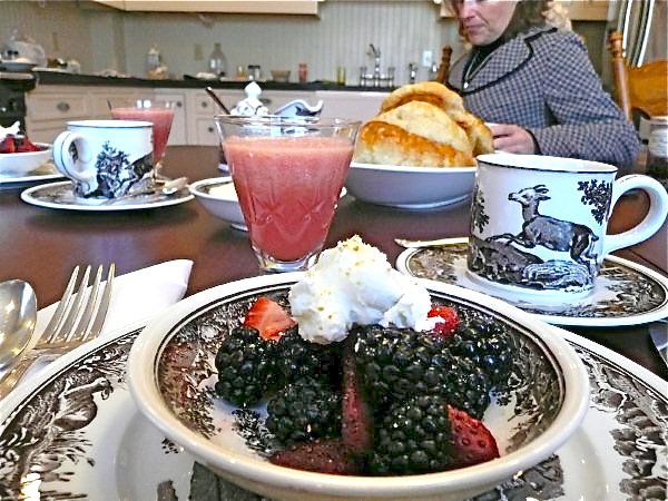 (A black fruit if in season (blue berry, blackberry, Saskatoon) for visual appeal, as well)