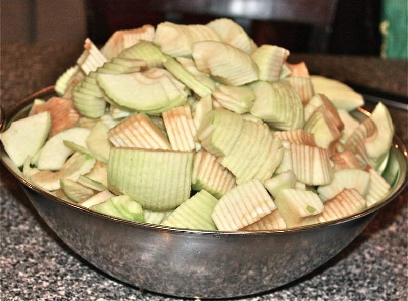 Oh, my darlings… let me tell you the whys. We peeled and sliced, together, 33 apples in about 20 minutes: effortlessly! I am smitten. Smitten. That is all I am going to say. I do not usually make 7 pies at once, anyway. This was enough (barely) for 5 apple pies. We made it work. We could have had more. More! Yes, we could have had 7 or 8 apples in each pie. Wouldn’t that be fun?