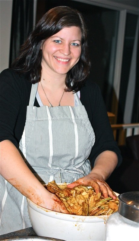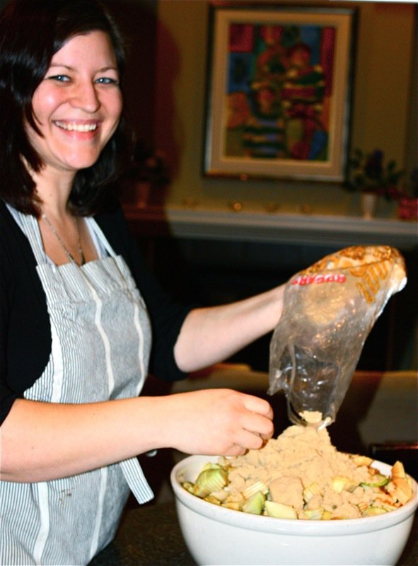 Christan is not a run of the mill young woman. First of all, I didn’t know her at all before she accepted my invitation to cook together. That takes courage. Second of all, she was brimming with confidence. It was quite unexpected and really gratifying for me to bake with such a young gal so completely in charge of what she was doing. Talk about role reversal! I loved it, and learned a great deal. Don’t get me wrong. I know how to bake a mean apple pie, but so does Christan, and I got an entire evening to learn from her. Lucky me!