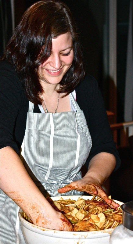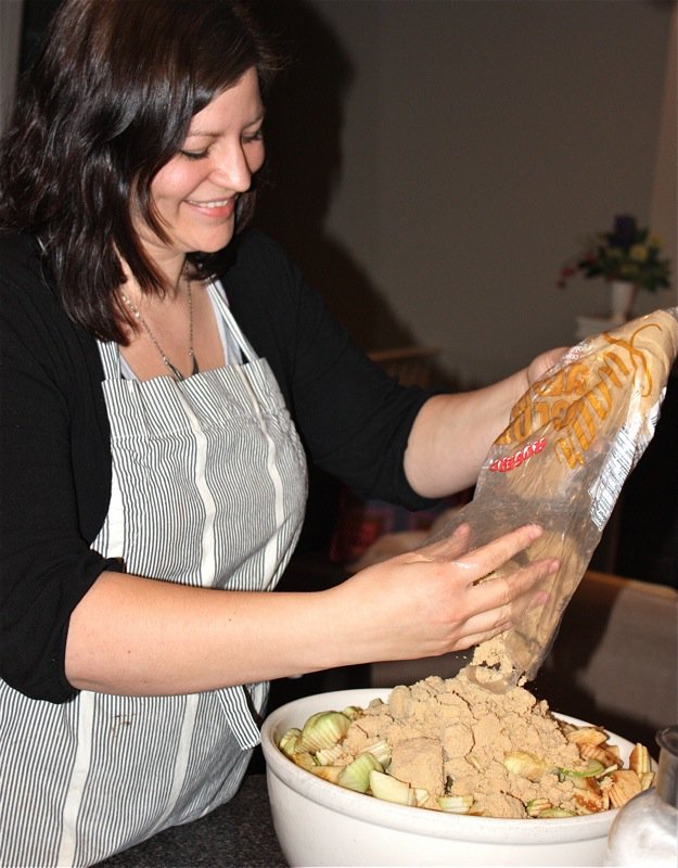 The last little bit is going in How did she determine the right amount of sugar for all those apples? Don’t you worry! She has her way, and was a very good teacher, too!