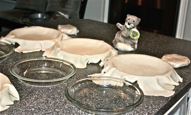 We have all of the pies filled, almost, below. Beavie is ecstatic. I have rarely seen him laughing so hard. What was so funny?