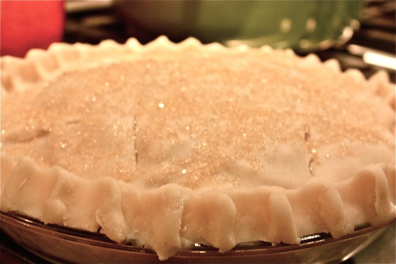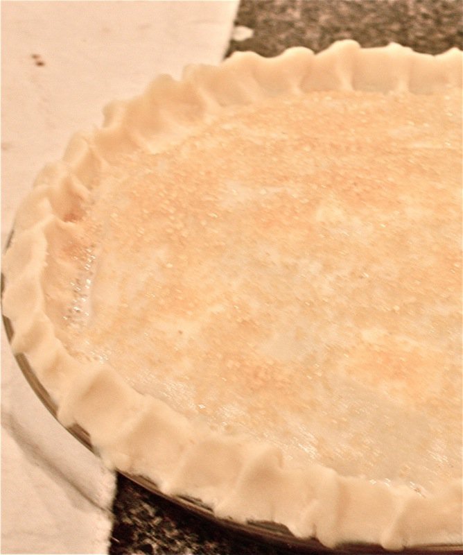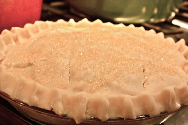 Mom taught me how to crimp, and her mother, and hers… and back and back and back. I am partial to my crimping. It is part of who we are… the rest, I am open to. I am eager to taste our results. We dusted the top with sugar for that lovely pastry crunch and decorative sparkle. She used less. I used more.