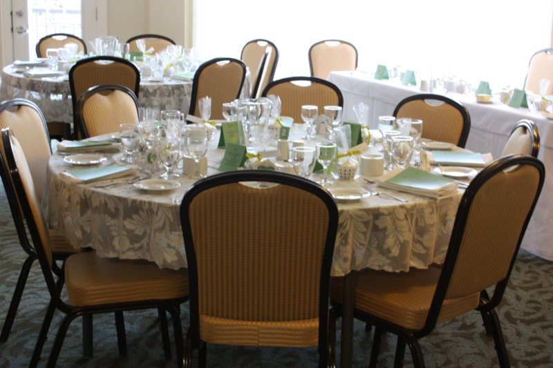 The flowers arrived. The decorating scheme was not lost on Lauren (my daughter). She had flown in from Palo Alto and was to have been married in March 2009 with this exact colour and flower idea. I told her she could still use it. It was beautiful. She just grinned…