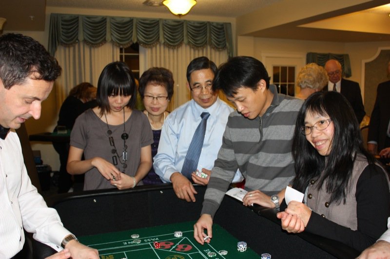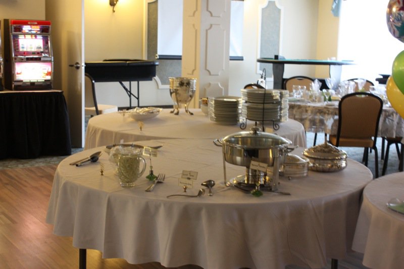 The casino was open. Judy rented a blackjack table, a roulette table, some slots and a craps table with attendants from Diamond Sound for the evening. They were absolutely excellent and it looked like fun, too. I had been to a party that had hired them in the fall prior and they are an excellent company with reasonable prices for this kind of event, me thinks.