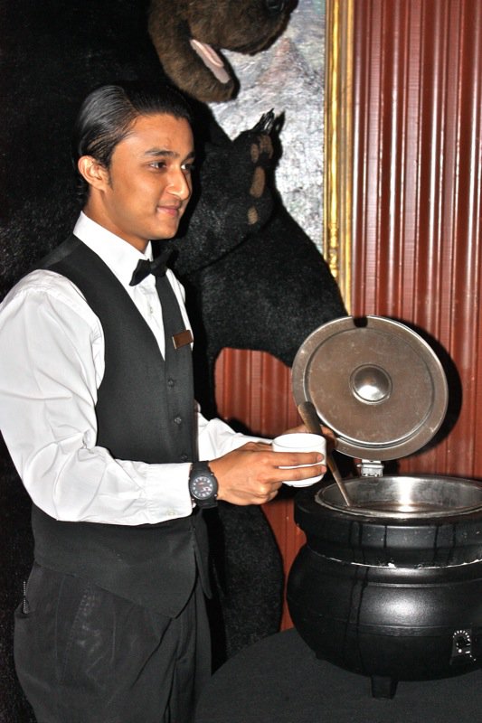 Warm, spicy, fragrant apple cider. Mmmm. Mmm. I was focusing on taking it all in when I didn’t even see the Olsen’s enter, and there they were, quietly prepping their station.
