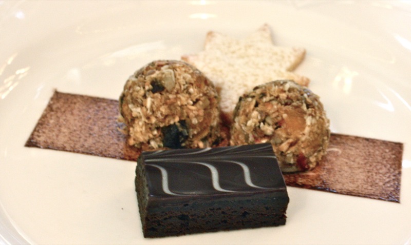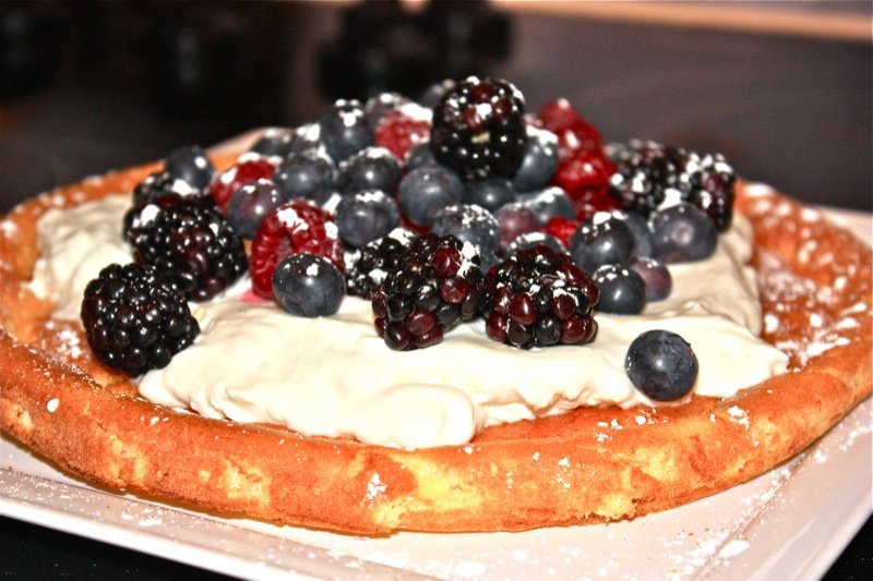 (A black fruit if in season (blue berry, blackberry, Saskatoon) for visual appeal, as well)