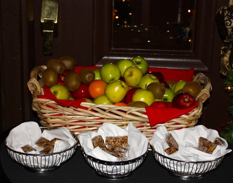 Heading out, still early, to get that front row seat, I saw the fruit and bars again beside the door to pocket in case you may be hungry later in the day. That made me smile.