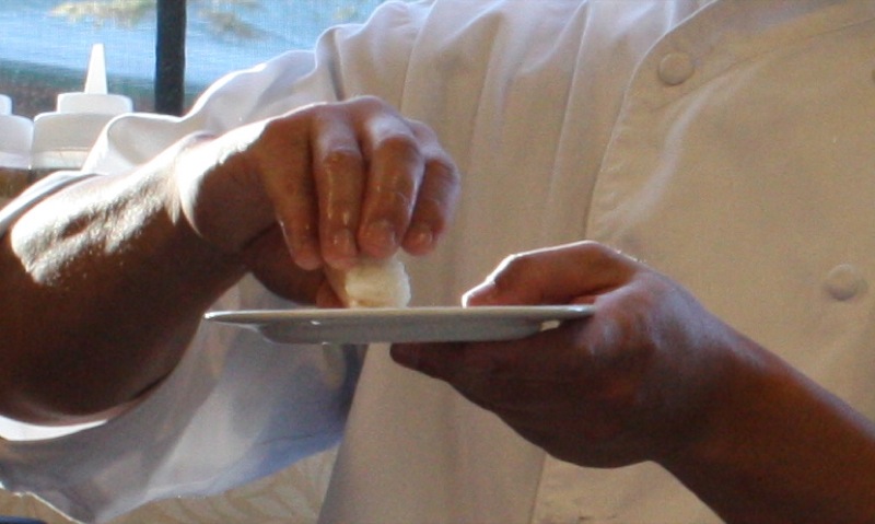 Now, it is our turn. He had volunteers join him at both sides of the table. What to do. Take notes or get my hands in the food. I started to take notes, but couldn’t stand it. I will definitely be getting my hands in the food second round.
