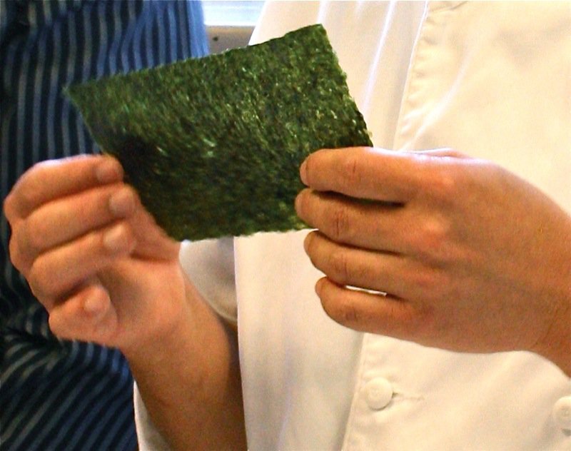 1.    Nori: place the shiny and smooth side on the cutting board; rough side up
