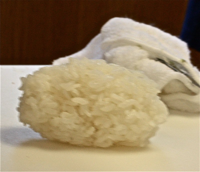 2.    Loosen your rice (fluff it up): grab it with your finger tips (snowball size); see pictures below
