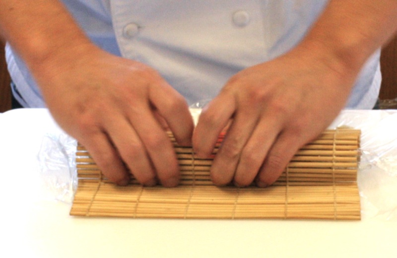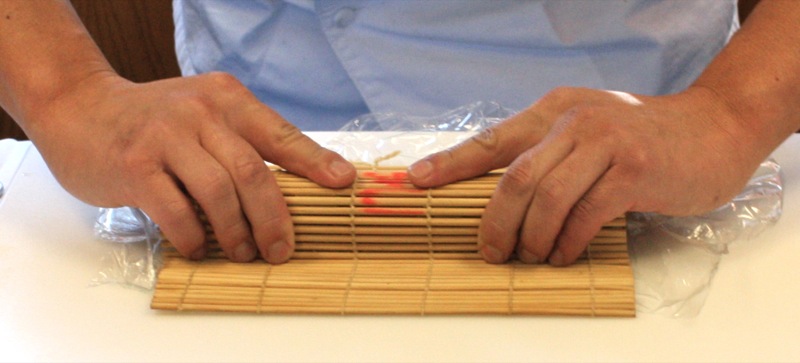 Watch this series of movements as Chef Yasukawa takes us through the shaping of the roll using the mat.
