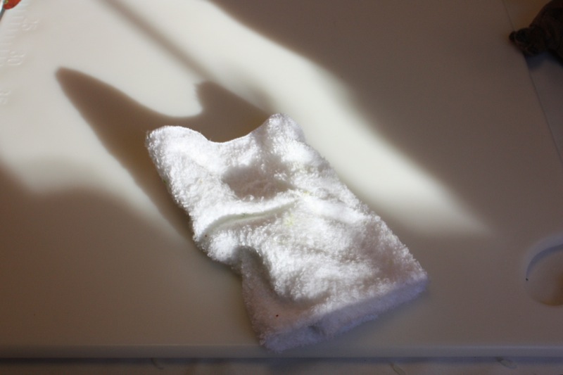 8.    (You must work on a moist cutting board, but not a wet cutting board) This is the most important part: roll it over gently, don’t push, and just tuck it under very carefully to ensure there is no space left inside.