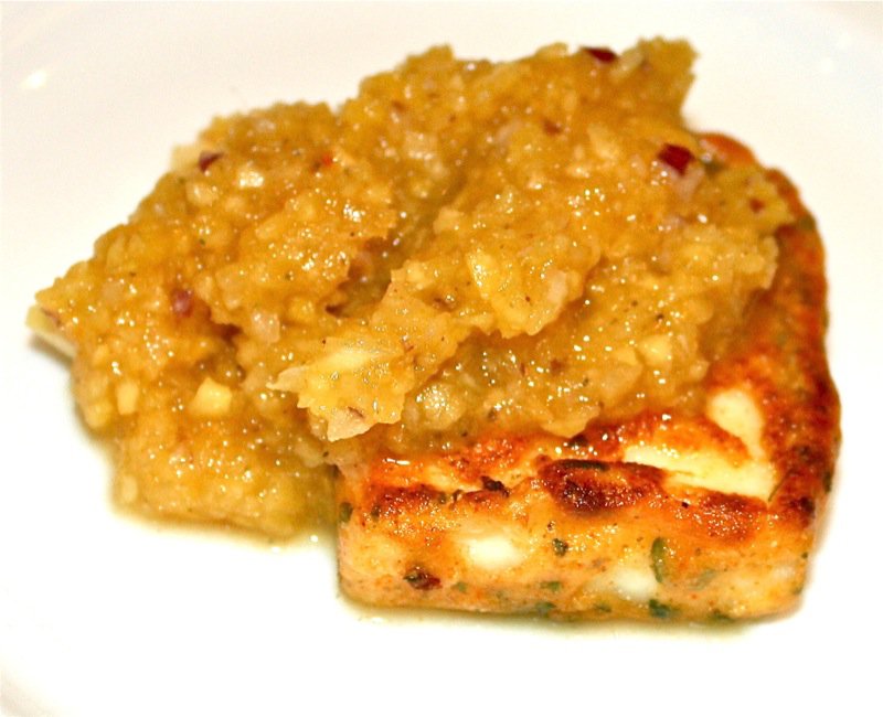 Note: Pan frying with a skiff of oil helps to keep the paneer cubes from falling apart: cook with grapeseed oil over a medium hot pan until golden and do the same on the other side. This will freeze and thaw very well; wrap tightly for the freezer.
