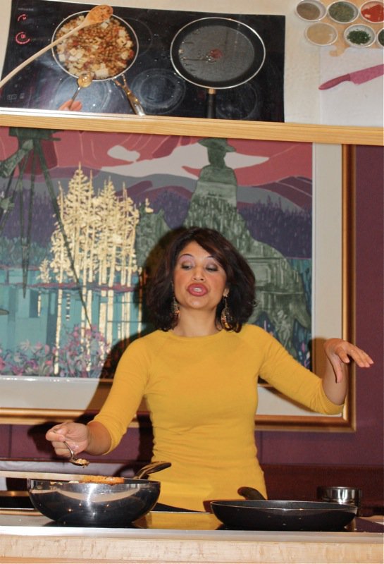 Bal Arneson is the author of Everyday Indian and apparently very famous in India and the US, she told us with a twinkle in her eye! Honestly, I had never heard of her before, and I am a Food Network Fan! She is the host of the Food Network’s recently launched “Spice Goddess” where she demystifies cooking with Indian spices and shares some of the special dishes prepared in her village. She believes that meals can be healthy and nutritious without compromising flavour!