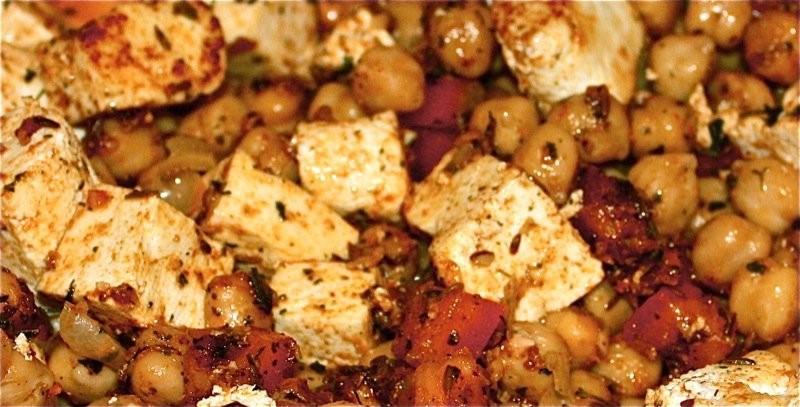 - Add the chickpeas and cook for another minute; turn the heat off and cover the pan with the lid to sit a few minutes before serving