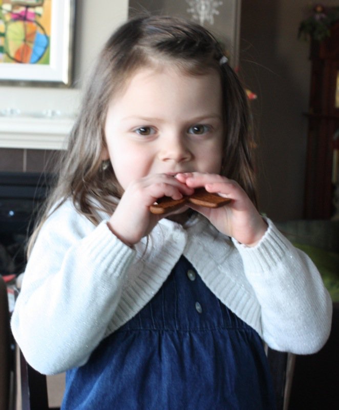 What a fun poem! Now THAT is a party I want to go to 🙂 How cute are Miss K and Miss E with those cookies (especially Miss E’s face as she tried peppermint!)? I’m glad to see that L and Gary could tag along for the fun as well! And that picture of LeeQs brandishing that knife is going to give me nightmares for a month – hee hee!