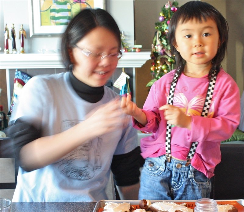 I LOVE your poem! Now can you come over on my bloggie and write me one that rocks just as much? Teehee. So many pictures and so many beautiful memories created on this day. Thanks to you, my children will always have these wonderful memories as their first time making Christmas cookies. This will surely be a tradition in our family from now on, and definitely with your delicious gingerbread and icing recipes. These were seriously THE BEST gingerbread men I’ve ever tasted. I cannot thank you enough for your kindness and generosity in creating such a fun and magical day for my kiddies. Watching the smiles on their faces and hearing their laughter melted my heart. Gary and I had a great time as well. It was so wonderful to meet Kevin’s daughter, and always a pleasure to see you and Kevin again. Miss E is just too adorable! She’s definitely one who’s wise beyond her years! Thank you again for having us over. The photos really do tell all. Great times, great times!