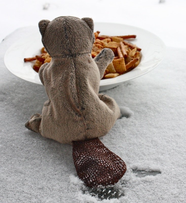 You can play with it a bit and use more of your favourite ingredients to make up the volume. For us it’s Cheerios, Chex, pretzels, corn chips, Pepperidge Farms Goldfish crackers and PC mini pita crackers. This year I found mini Triscuit crackers so I’ll toss those in as well. Peanuts aren’t popular in our family so I eliminated those years ago.