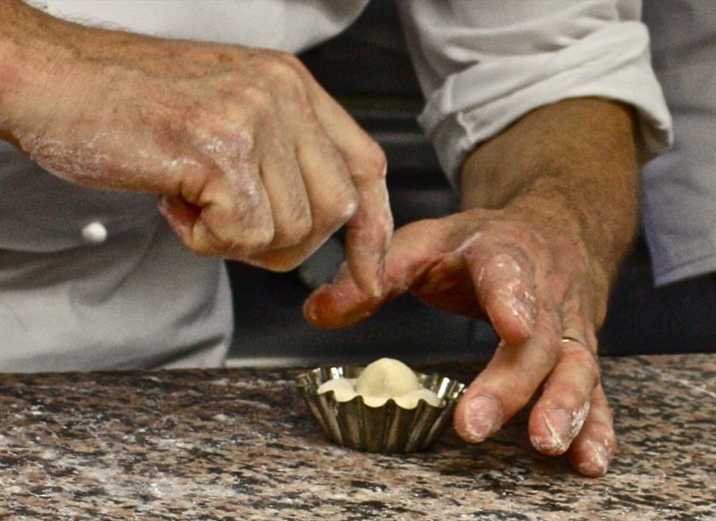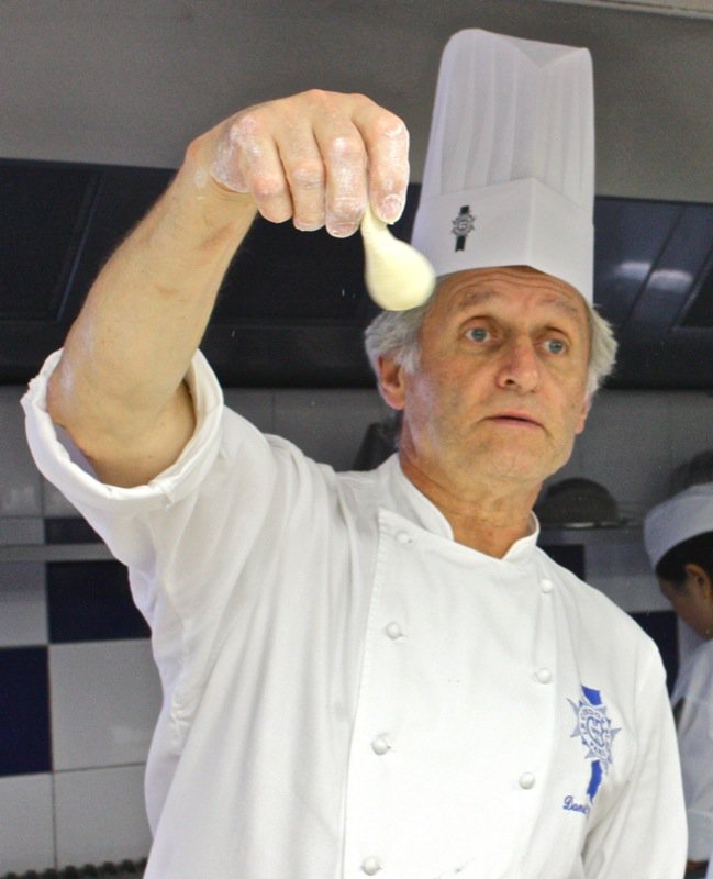 So, let’s revisit my lesson at Le Cordon Bleu in July of 2010. Chef Walters had saved some dough from a previous class and had it brought out of the fridge at the end of the day when we were asking questions. We were small and efficient class, so had some extra time. Lucky us!