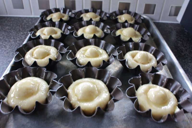 Everything in the TM bowl, the dough was fantastic to work with; the hardest part was ensuring the little head on top was done properly and would sit straight up. No guarantees… they are all in my little pans purchased from Dehillerin in Paris. Rising, for the second time, in their cute little shapes. and voilà ! They still look perfect and are ready for the oven!