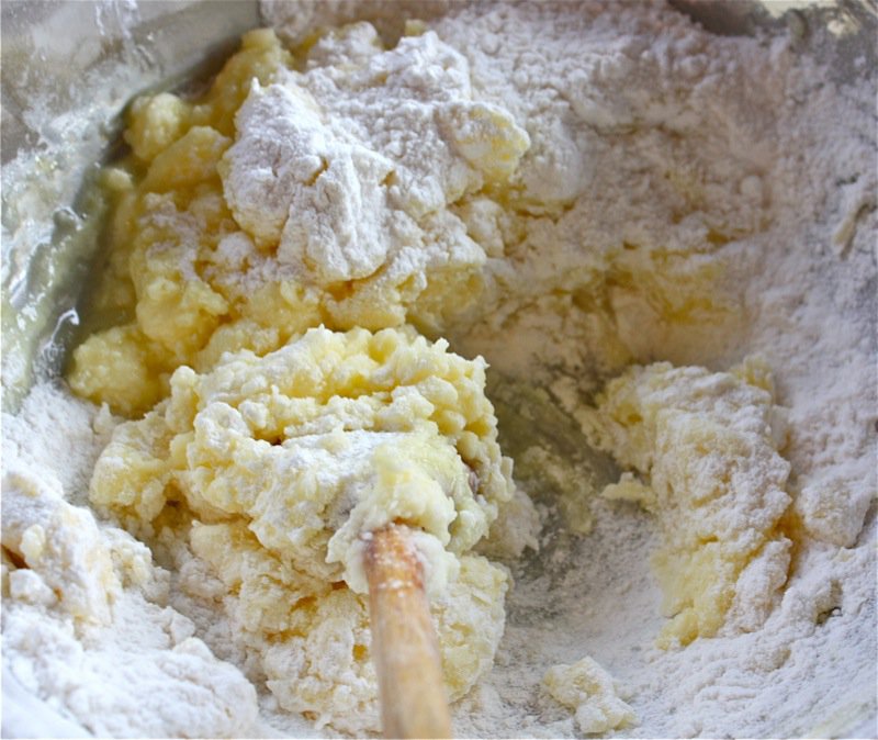- In large bowl, mix flour with salt; cut the soft butter into small pieces and add to flour/salt mixture: dough should resemble coarse crumbs