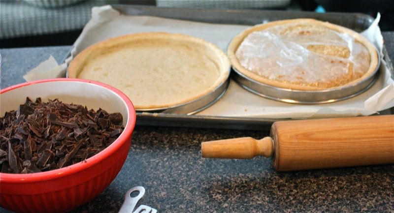 While the Pâte Sablée was baking in the oven (and it needs to fully bake, as the filling is just poured in and left to set), the gals shredded the chocolate.