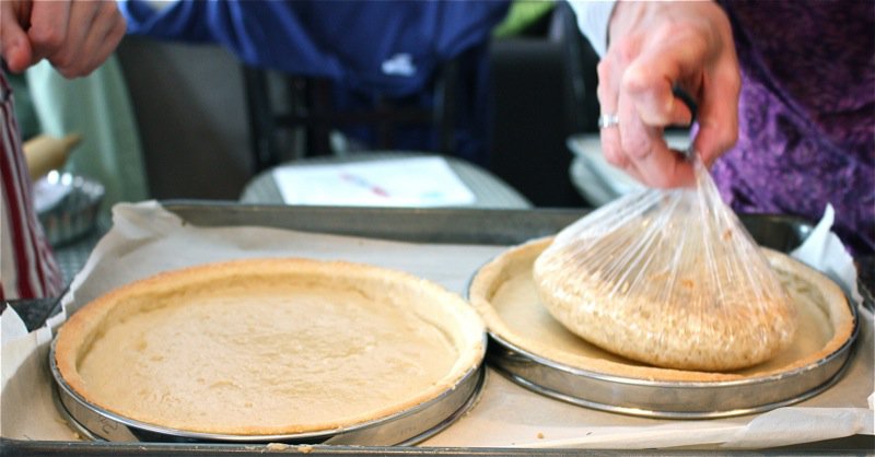 See the rice in the tart ring, below, getting ready to go into the oven?