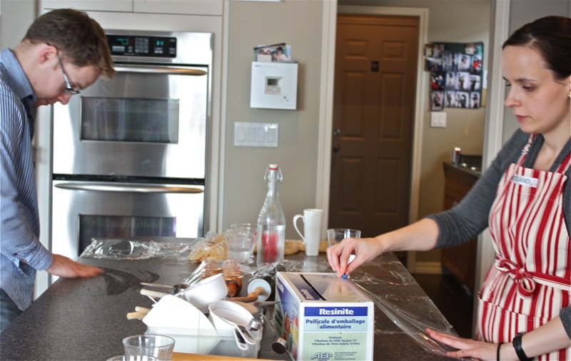 Below, the pastry for the quiche is being trimmed by the rolling pins rolling over the tart pan.