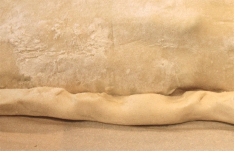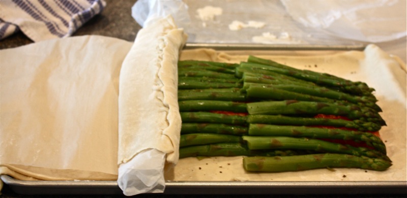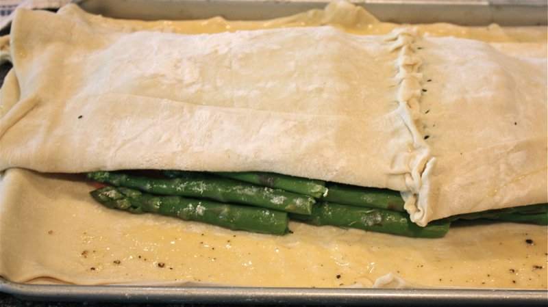 Do you see how the top pastry is pushed back into the fillet to hold the asparagus firmly in place in the first photo below. The, the bottom pastry is folded over and rolled or fluted.