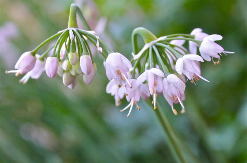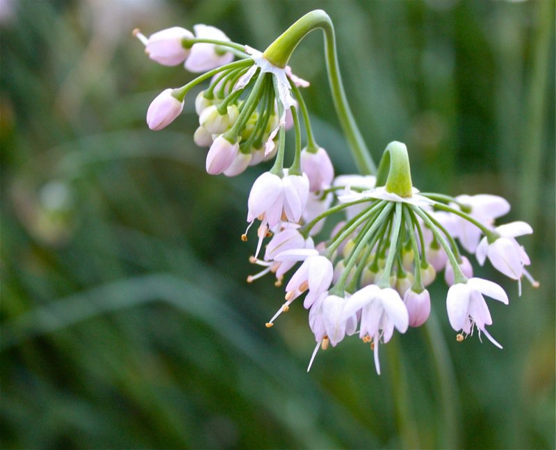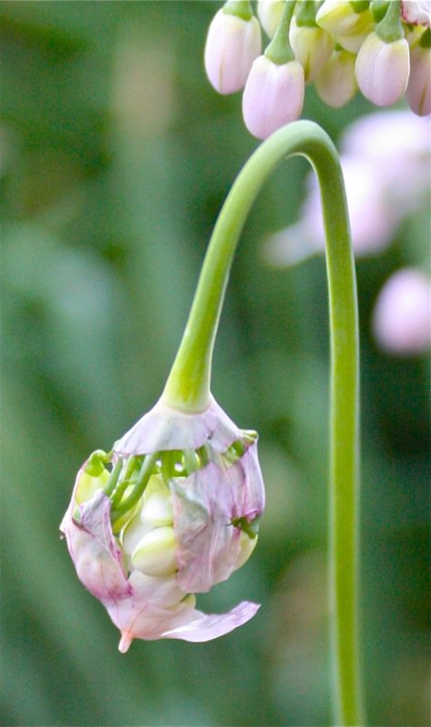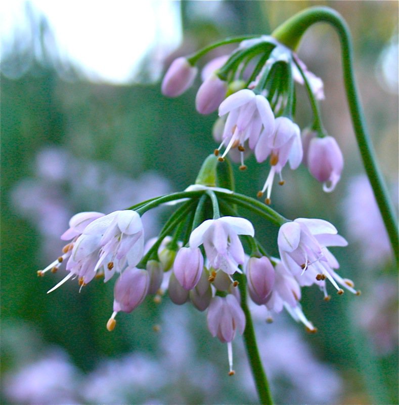 I was tickled pink about three weeks ago when the blossoms started to form and I got to see them nod! As they bow to their gorgeous blossom wrapped in an ethereal translucent pink gauzy film there is a graceful stillness in that part of the garden. There is the whisper of a promise. I can visualize them in the temperate rain forests hundreds of years ago when the Interior Salish and neighboring indigenous peoples whose territories covered Southern British Columbia foraged these as an important traditional cultural food. The stature of the onion echoes the spirit of the people who depended upon it so many years ago. They were usually harvested before flowering, the leaves braided and the bulbs cooked in earthen ovens. MMMMmmmm.