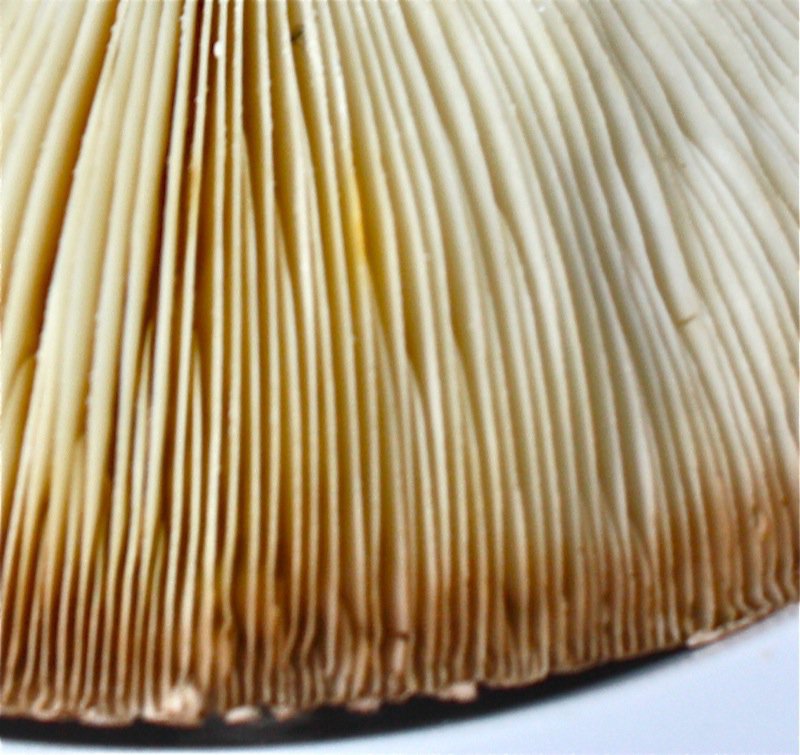 The intricacy of the underside of the cap is fascinating. I know nothing about foraging for mushrooms. Zero. Nothing. I am interested. I started to become interested when I was a Brownie hunting in the urban forest for fungi and looking them up in our little identification manuals… until the instructor consistently pointed out: poison. It is just the past few years that I have come to learn how many of the mushrooms in my own backyard – and sometimes in my own front lawn – are edible. I said to Kevin, “This is a gorgeous mushroom. Why is it that more of us don’t know about these kinds of things?” And his insight was acute, “These are growing all over the city. It is simply a lack of knowledge: ignorance.”
