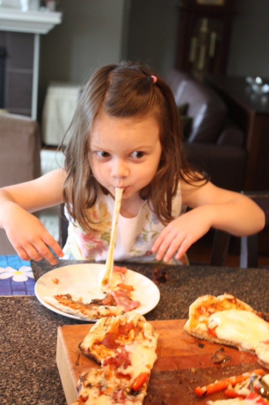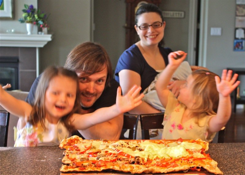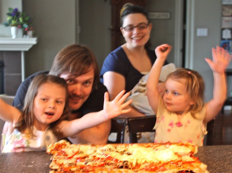 And then we made grilled pizzas. Everyone. And played. And ate, and laughed, and made a great big mess that took five minutes to clean up and had a wonderful day in spite of the ever present rain.