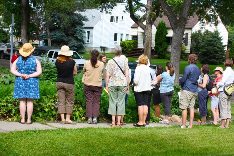 We visited five gardens in the morning and my group saw four in the afternoon. I heard a maybe missed the best part of the day, but I cannot imagine anything better than the morning I spent, burned hand and all. One of the gardents you will see is my friend, Kevin Kossowan’s garden, and if you have questions about his space, pop on over to his site to ask those.