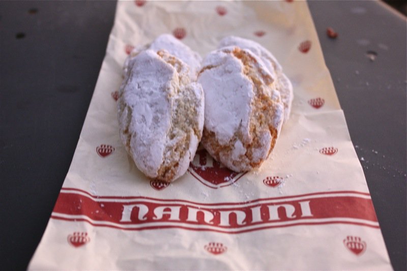And the finale? Ricciarelli, a traditional Sienese almond macaron-like cookie dating back to the 14th century made with sugar, honey, almond and egg white. Buy them. Buy as many as you can. Eat them every day. You will never get enough and you cannot get them anywhere here. We got ours at Nannini in Siena, and they were undeniably scrumptious. The taste, in this place, on this evening, after the clementine was an unforgettable taste of Italy. As Letizia says, “Italy is a country where the culture is focused on food. This is a food country and there is no denying that.” The clarity of this experience is a testament to her belief.