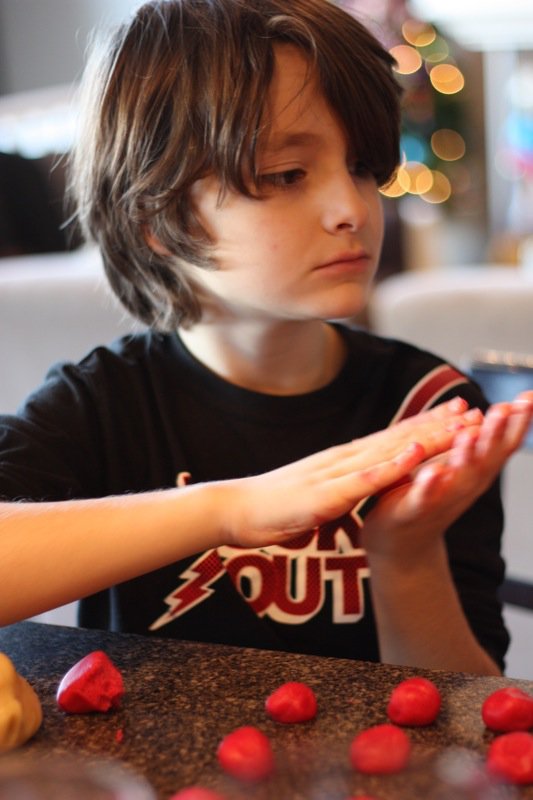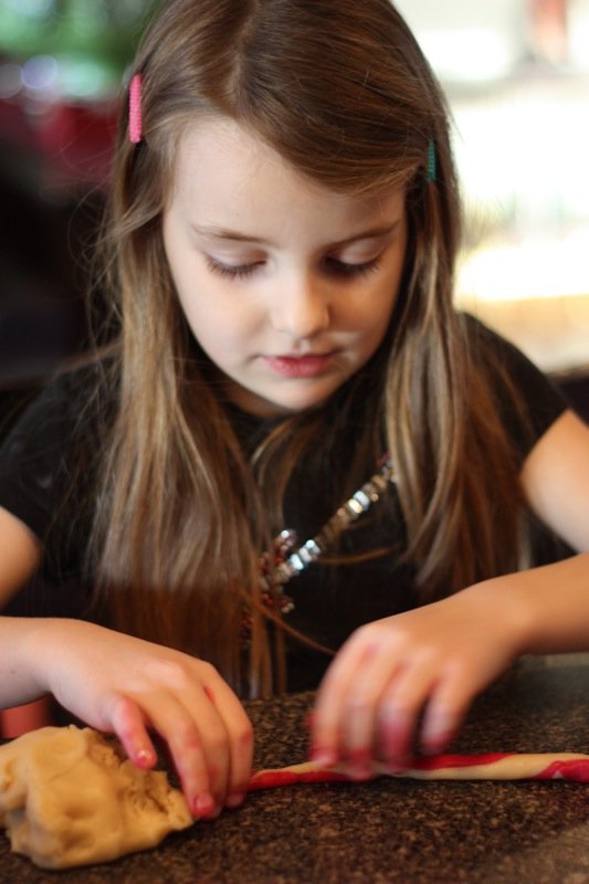 Last year we made gingerbread, and this year, I decided to make Candy Cane Cookies. These are Susan’s (from Savoring Time in the Kitchen) favourite traditional Christmas cookie and as I read about that, I was reminded about a time many years ago when I made these with my students. They were so much fun and so it was decided: time to make these again.