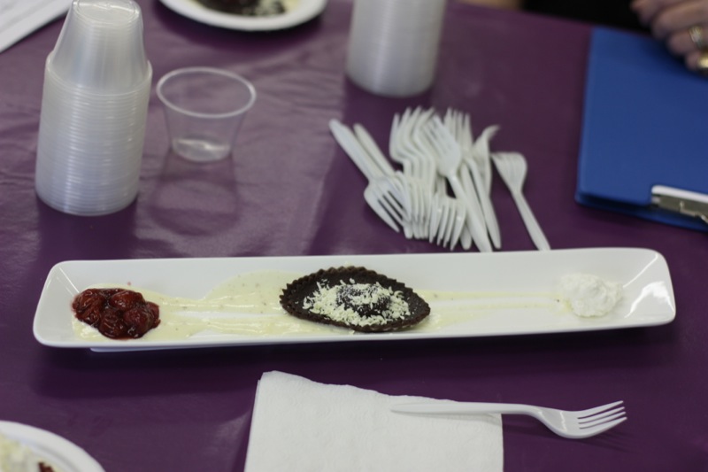 (A black fruit if in season (blue berry, blackberry, Saskatoon) for visual appeal, as well)