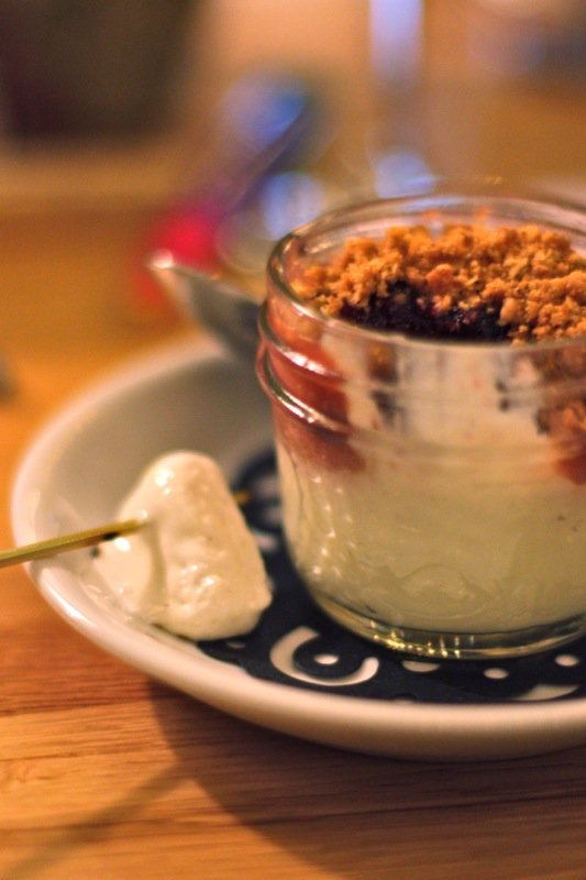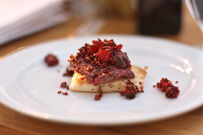 (A black fruit if in season (blue berry, blackberry, Saskatoon) for visual appeal, as well)
