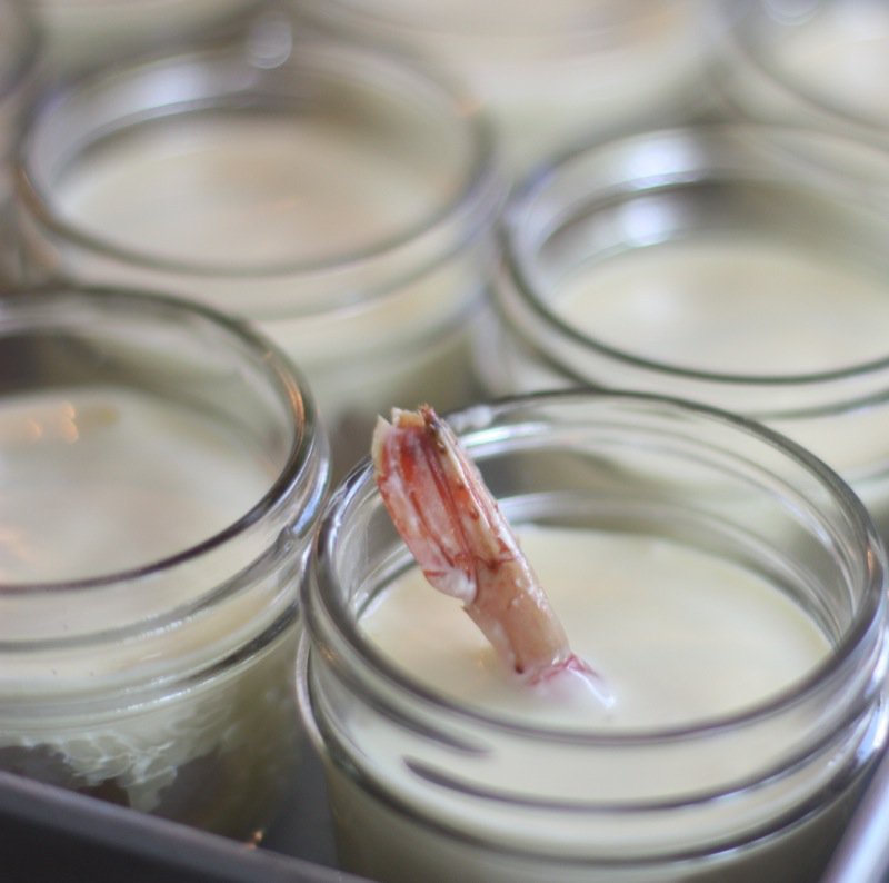 I did my research after cooking my prawns. Yes, I do know better! They were deadly delicious, but to maximize the experience of this wild and rare Pacific Ocean delicacy, I would suggest not using this recipe for your first tasting experience. It is a great recipe, though. Two minutes is the maximum time needed to cook these morsels of sweetness and sea for your first time, sauteed with butter. This dish was a very tasty complement to grass-fed tenderloin I served and the prawns were beautifully cooked. This savoury potted custard is a lovely starter for any meal and there is no end to what can be created from this concept. Grate some fresh horseradish into the cream for an added zip.