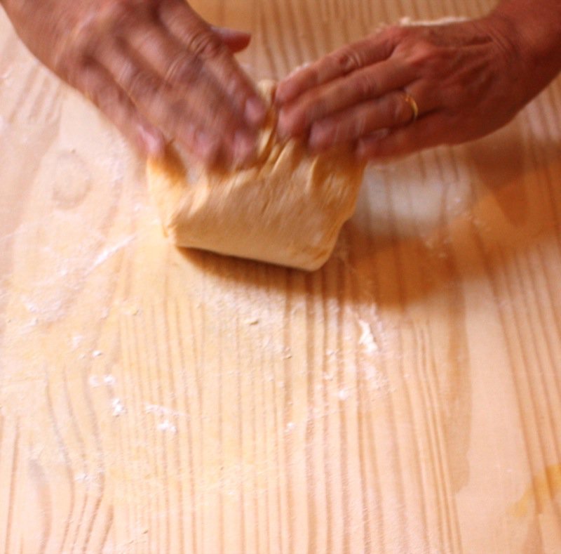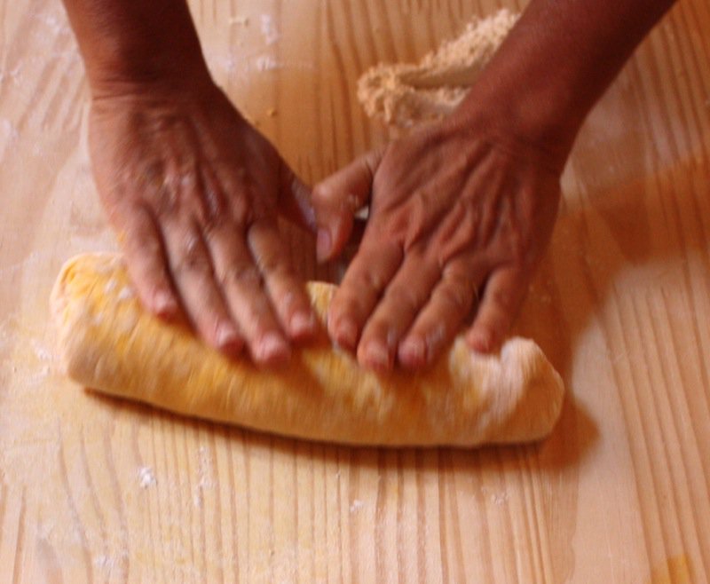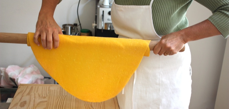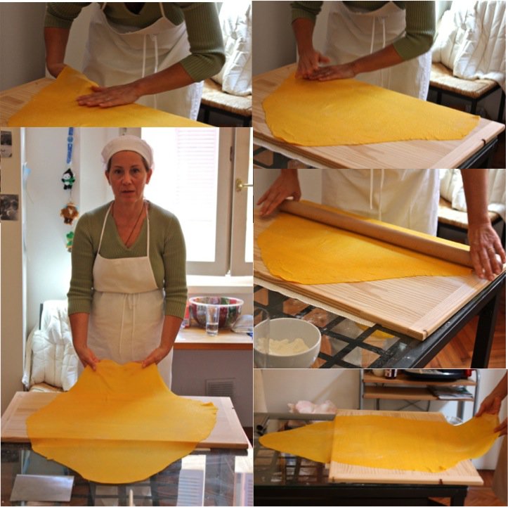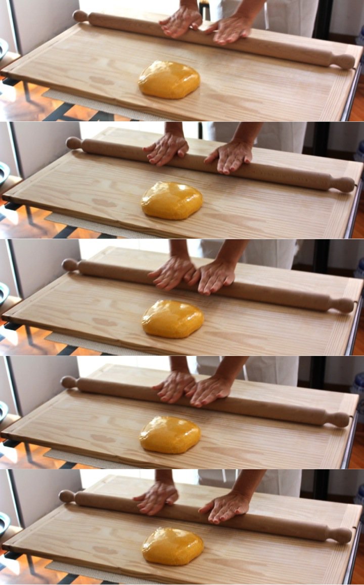 - Never touch the dough. No fingerprints allowed! (see last photo where Mirabel demonstrates how to NOT touch the pasta when turning the dough)