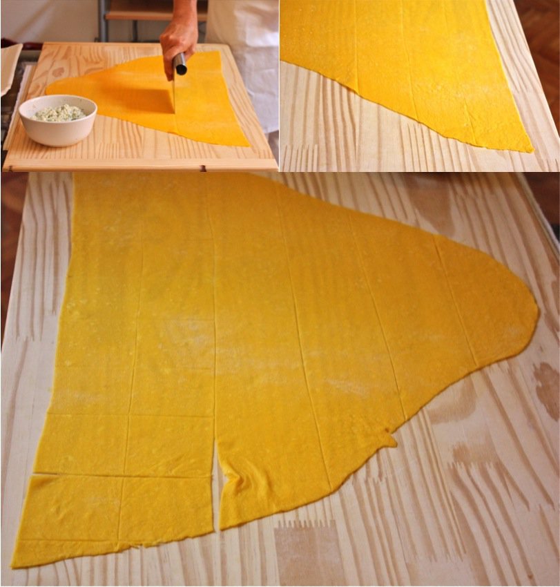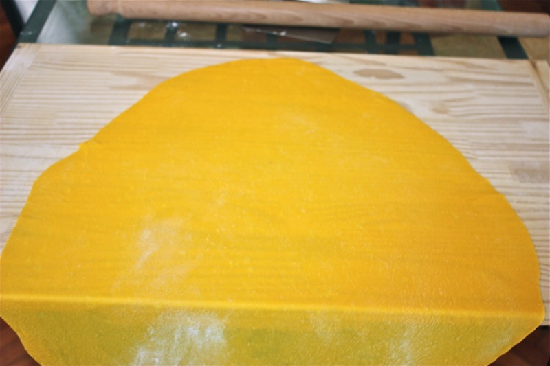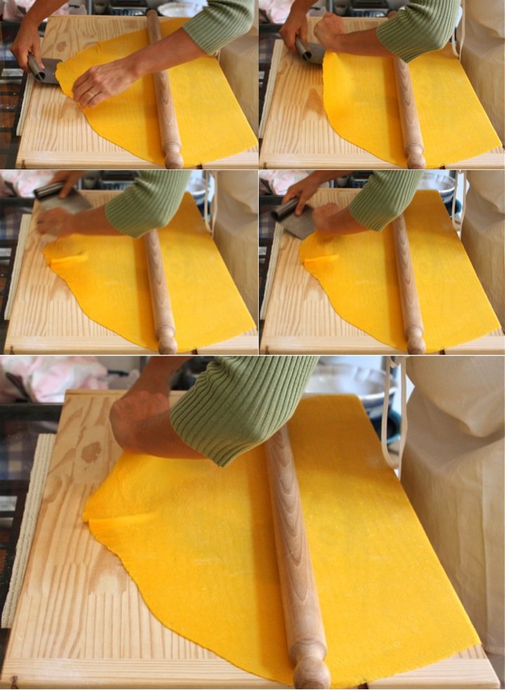 - Depending upon the amount of pasta you are making, the sheet could be enormous by now, and difficult to work with, as mine was for four people. Work on each edge only once, if possible.