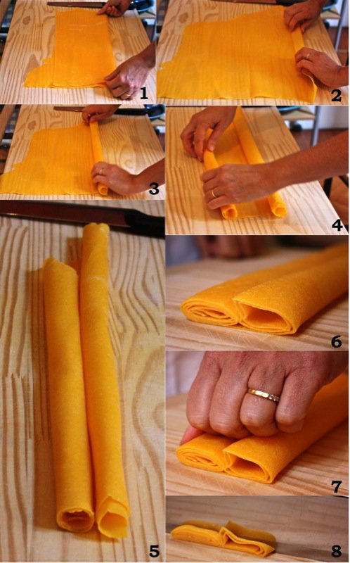 - Follow the pictorial and written instructions from the top of the post to just above: final step is cutting the pasta