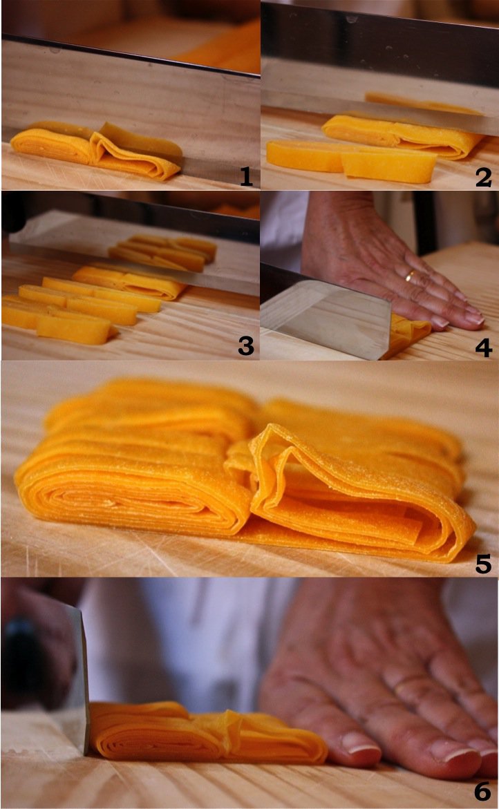 Cutting Hand-rolled Pasta Dough for Handmade Taglietelle
