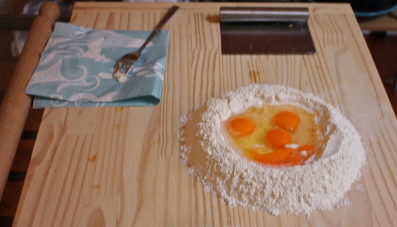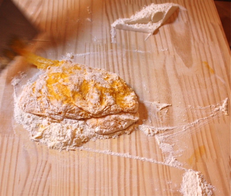 Do this until all of the flour is incorporated into the eggs. Have you noticed there isn’t any salt or any other ingredient? Only flour and eggs.