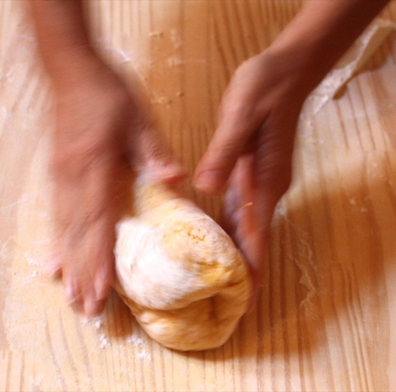 - Do this three times, then turn the dough ¼ turn and continue three more times.