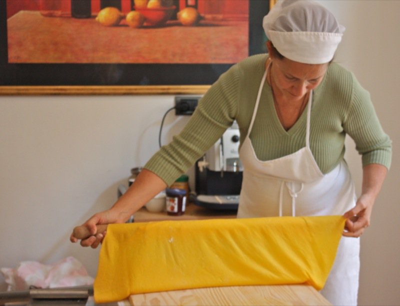 In Emilia Romagna there is an old saying, “Non si butta via mente!” which means nothing goes to waste! Mirabel integrates the philosophic culture of the Bolognese people as she shares their centuries old and world famous tradition of hand rolled pasta. This day and the lessons learned were an unexpected pleasure and a privilege. Martina had told me she would arrange a homemade pasta lesson for me in Bologna, and I left it in her hands, yet I had no frame of reference for the experience I was about to undertake. This was an authentic hand rolled pasta lesson. A sharing of the age old culinary art from generation through generation to me. This was a priceless opportunity. Grab a coffee and put your feet up for this technical epic.