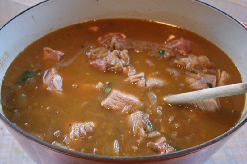 We use chuck steak, sweet paprika, vegeta, lots of onions, some carrots, a touch of celery, some garlic, basil….the key here, imo (after maybe cooking this 100 times in my life) is to strike the right balance. Many times I’ve used too much paprika or vegeta (I’m blaming the wine, hehehe) or too much celery or just too much of everything.