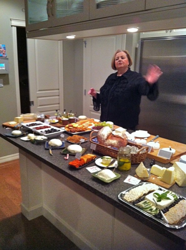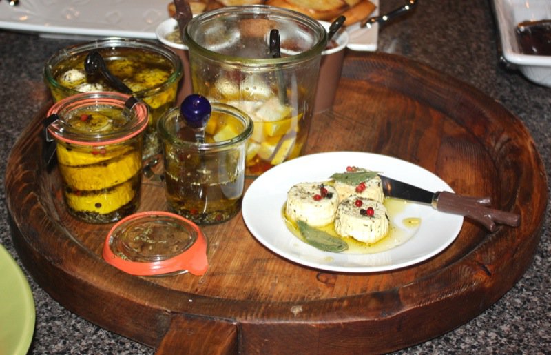 Different people come to every tasting, so I make and haul out my old favourites: My yogurt cheese balls, and this time, a Mini Cabécou made with the small individual moulds from Glenngary. I also showcased Ian’s marinated recipe with my goat chèvre . There aren’t any photos, but I also had cow chèvre and goat chèvre for tasting. The sheep chèvre was still hanging on the sink faucet and didn’t get finished in time for the party!