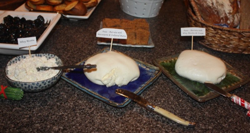 Leslie and Alex also brought the original Holly’s Alpine, plain, caraway, and sagaanaki cheeses for sampling! Below, are Larry’s chèvre balls. I was amazed at how similar the flavour was to my yogurt cheese balls. The texture was also similar!