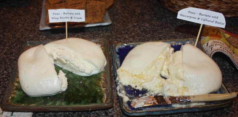Sailer Rick consistently knocks it out of the ball park and had me swoon with his contribution to the tasting. Cannot WAIT until his post is up so I can see how he made his two incredible Burratas! He also brought whey ricotta, cultured butter and mascarpone! Oh, and smoked cheese with two rubs on top and a homemade bread cracker! The smoked cheese wasn’t homemade, but he wanted us to see what he could do with a smoker and cheese! WOWSA! His burattas were not at room temp, but so close, I thought the fillings would just ooze out. Nope. With a little nudging from the nuke-o-matic, they did ooze. Decadent deliciousness! I could have licked the plate.