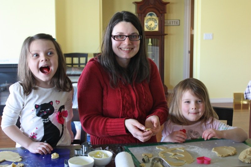 The Magpie Munchkins appear to have more to take home because they baked their entire batch, while the Kossowan Clan took some dough with them to finish at home. A lot of people have trouble with these sticking to the pan. I found the Kraft recipe to be a great spring board for my rendition. I left out 2 whole cups of flour which is a lot, but they turned out perfect. I would say, this is a no-fail stained glass cookie recipe! Get the family together and be prepared for a whole lotta fun (bake some precious memories, to boot!)